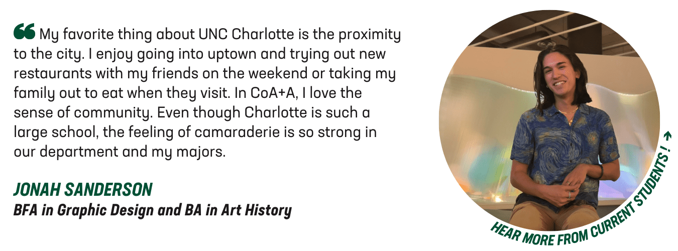 “As a recipient of the Broderick Adé Hogue Memorial Scholarship, I feel empowered to continue his legacy of elevating minority communities at UNC Charlotte,” Sanderson said. “As a Filipino-American graphic designer and art historian, this scholarship allows me to further my studies and celebrates my ongoing dedication to promoting visibility for Filipino students within the college and throughout the University.”