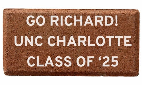 All inscriptions must pertain to a student's name, degree, grad year or a note of congratulations. UNC Charlotte reserves the right to approve or require an adjustment to inscriptions before production.