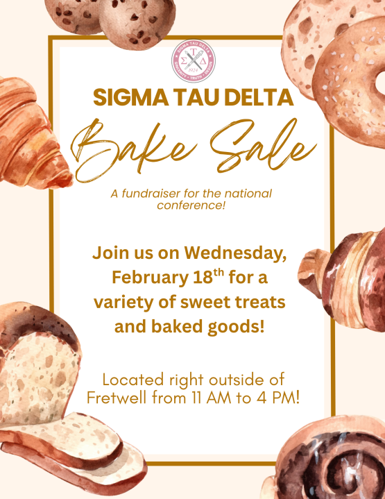 The donations received from this event will help fund students’ Sigma Tau Delta Conference trip to New Orleans this March!! Only $300 until we reach our goal!!