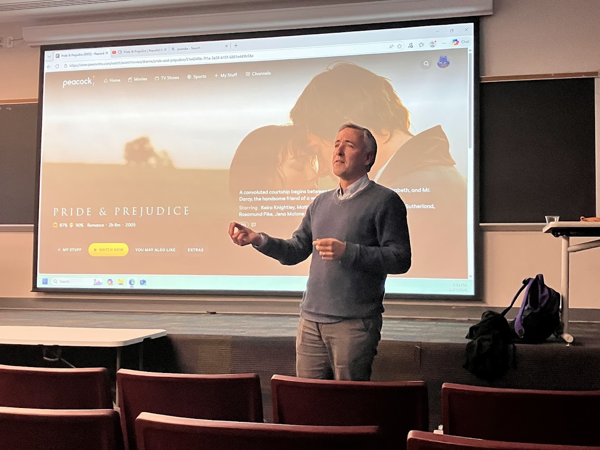 Thank you to all the faculty and friends that took time out of their day to support students in their movie event last night! It was a night full of many laughs, sappy tears, and moving conversations. After the movie showing, students stayed late to have a conversation with Professor Rowney about the time period Jane Austen was writing in, the differences between the novel and its 2005 film adaptation, the possible literary connections ranging from Bible allusions to later writers drawing inspirations from Austen's writing, among other topics!