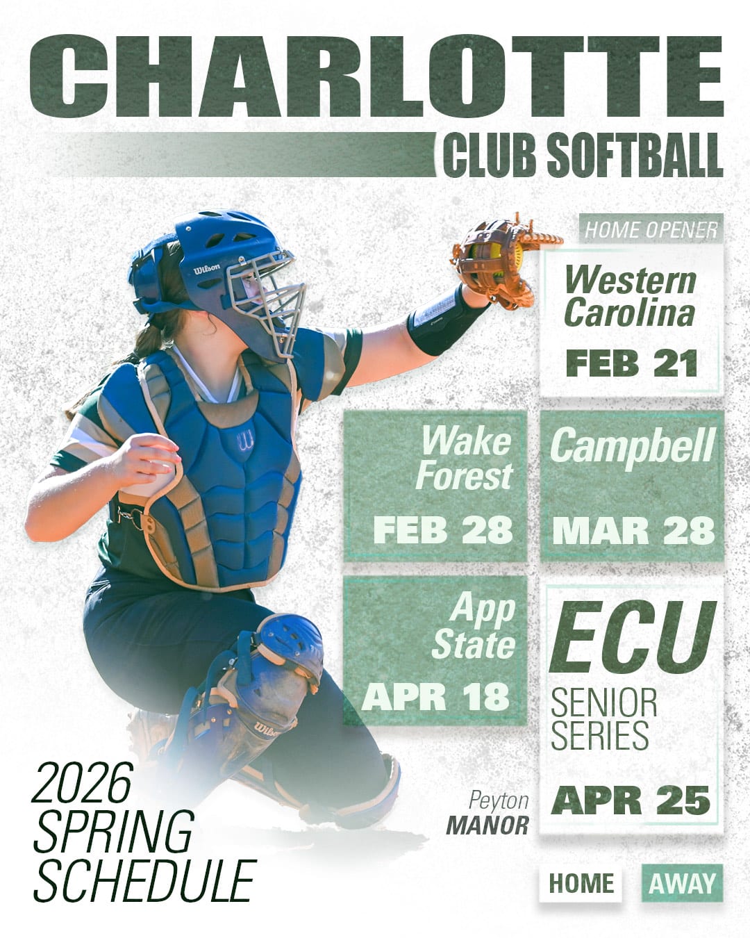We are the UNC Charlotte Club Softball team. As a student-led club, our team aims to provide a space to play softball at a national club collegiate level and provide learning opportunities for new members who have shown interest in our sport. We are a part of the National Club Softball Association (NCSA) DII program, where we compete against other universities, such as Elon, Wake Forest, and High Point, in series throughout the entire school year. We travel to other universities as well as host teams. One accomplishment from this past semester was getting some new wins while participating in a new division!